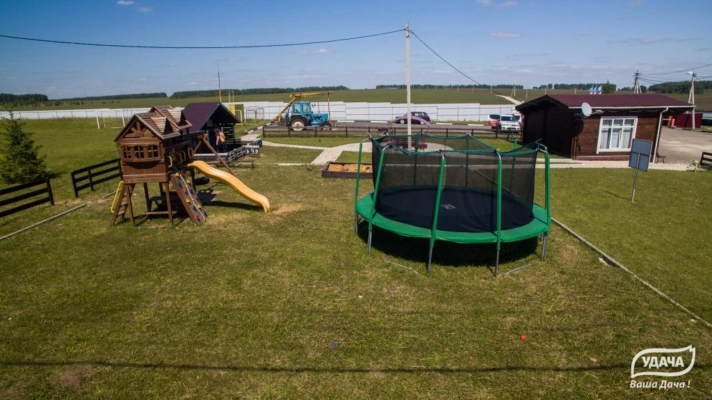 В поселке есть дороги, внешнее ограждение, электричество, детский городок с батутом, подведен газ.